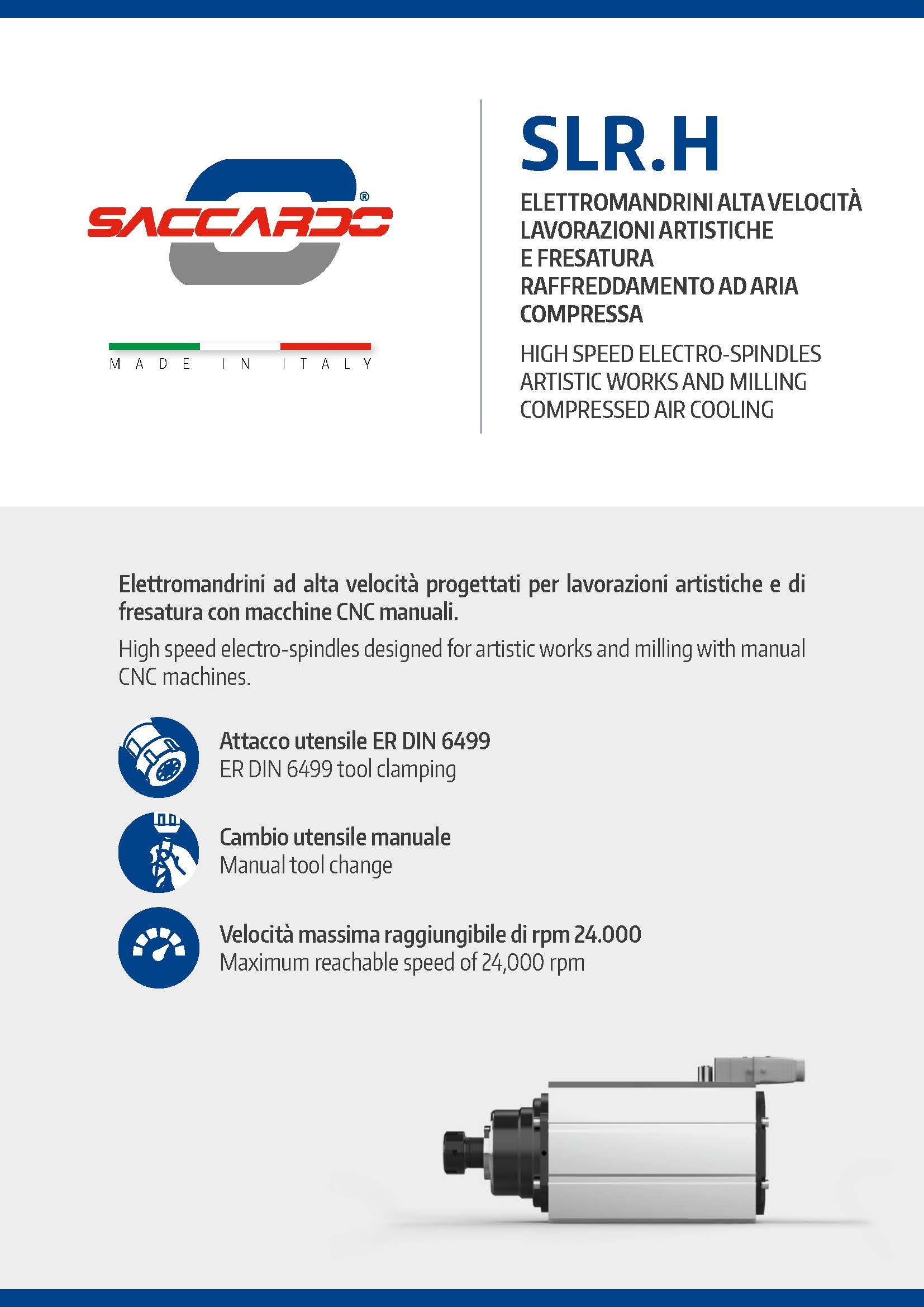 專為藝術(shù)作品和手動數(shù)控機床銑削而設(shè)計的高速電主軸。ER DIN 6499 刀具夾緊手動換刀最高可達 24,000 rpm