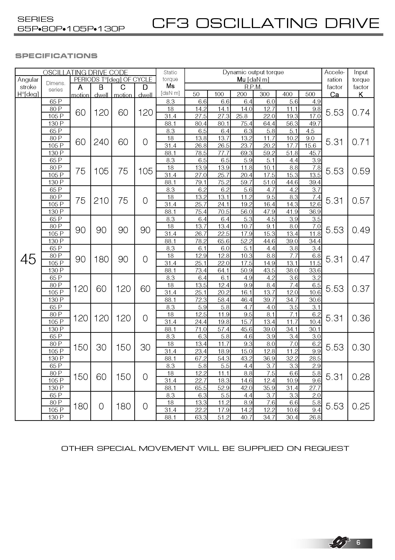 | 尺寸 400P、500P 和 650P 不在目錄中,因?yàn)樗鼈兪菫樘厥庖蠖谱鞯摹?/span> 與 COLOMBO FILIPPETTI spa 的其他產(chǎn)品一樣,該機(jī)構(gòu)可以根據(jù)需要制造成具有不同的運(yùn)動(dòng)規(guī)律和特殊周期。 | |